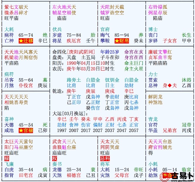 福德宫代表了命主的运气和福气。通过分析福德宫的星曜,可以了解个人的运气走势、幸福感和生活的整体福气。这个宫位的良好配置通常预示着好运和幸福,而不利配置则可能影响整体运势。
